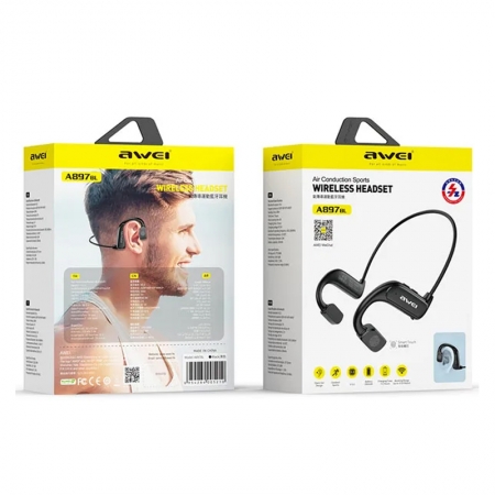 AWEI A897BL Air Conduction Bluetooth Headset Waterproof Wireless Headphone Black