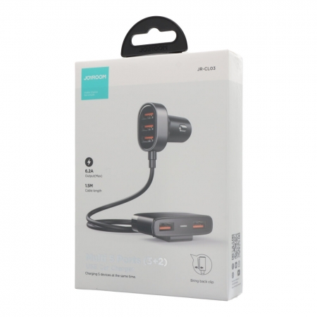 JOYROOM CL03 CL03 31W USB*5 Ports Car Charger Adapter with 1.5M Cable for Back Seat Charging Black